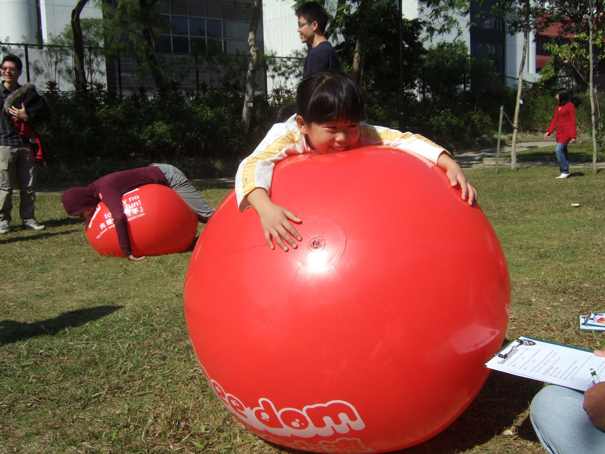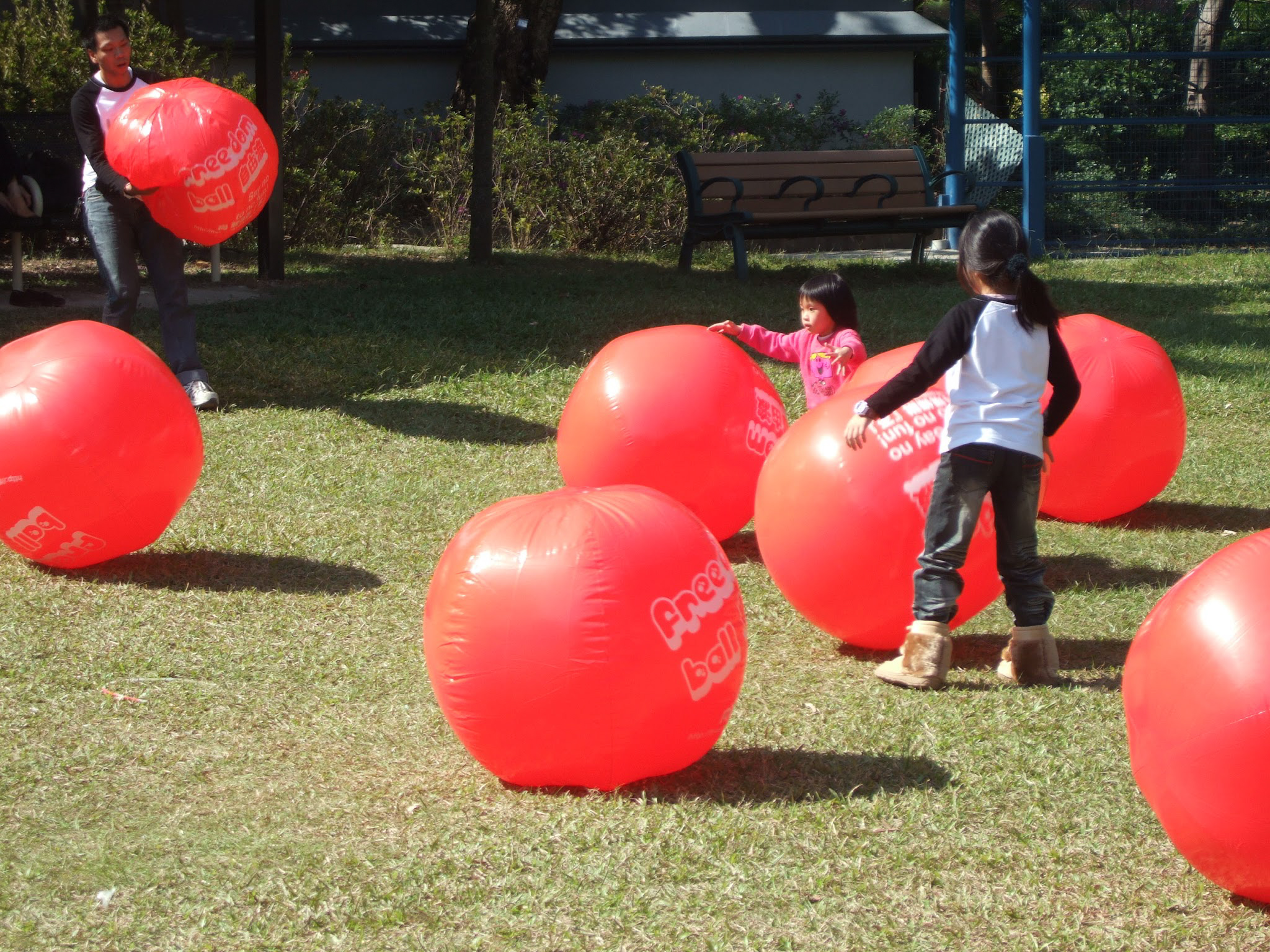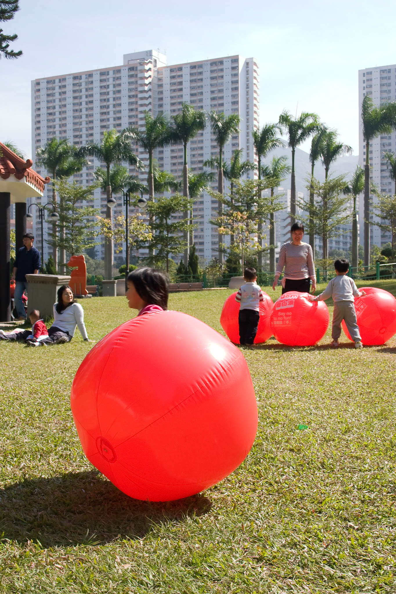 Freedom Ball was a guerilla intervention in public space that challenged whether Hong Kong parks were designed, managed and regulated for the benefit of Hong Kong people. Large red balls were placed in parks, encouraging the public to interact in ways that challenged park design and regulations, sparking discussions between the public and park management. This led to public discussion and surveys, TV and press coverage and eventually meeting with government departments, workshops with park management and a large scale intervention filling Shatin Park with hundreds of balls. In the end this led to significant changes in park design, management and regulation as well as commitments to having open, flexible public space in all new park designs, removing restrictions on activities and starting the process of removing fences restricting public access in existing parks.